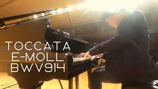 前半は、トッカータに典型的な走句をもたず、比較的ゆるく控えめな始まり方をする。アレグロでは、冒頭で二つの主題が同時に提示され、明澄なテクスチュアながら二重フーガを展開する。これに半音階的な装飾をもつ華やかなアダージョが続く。